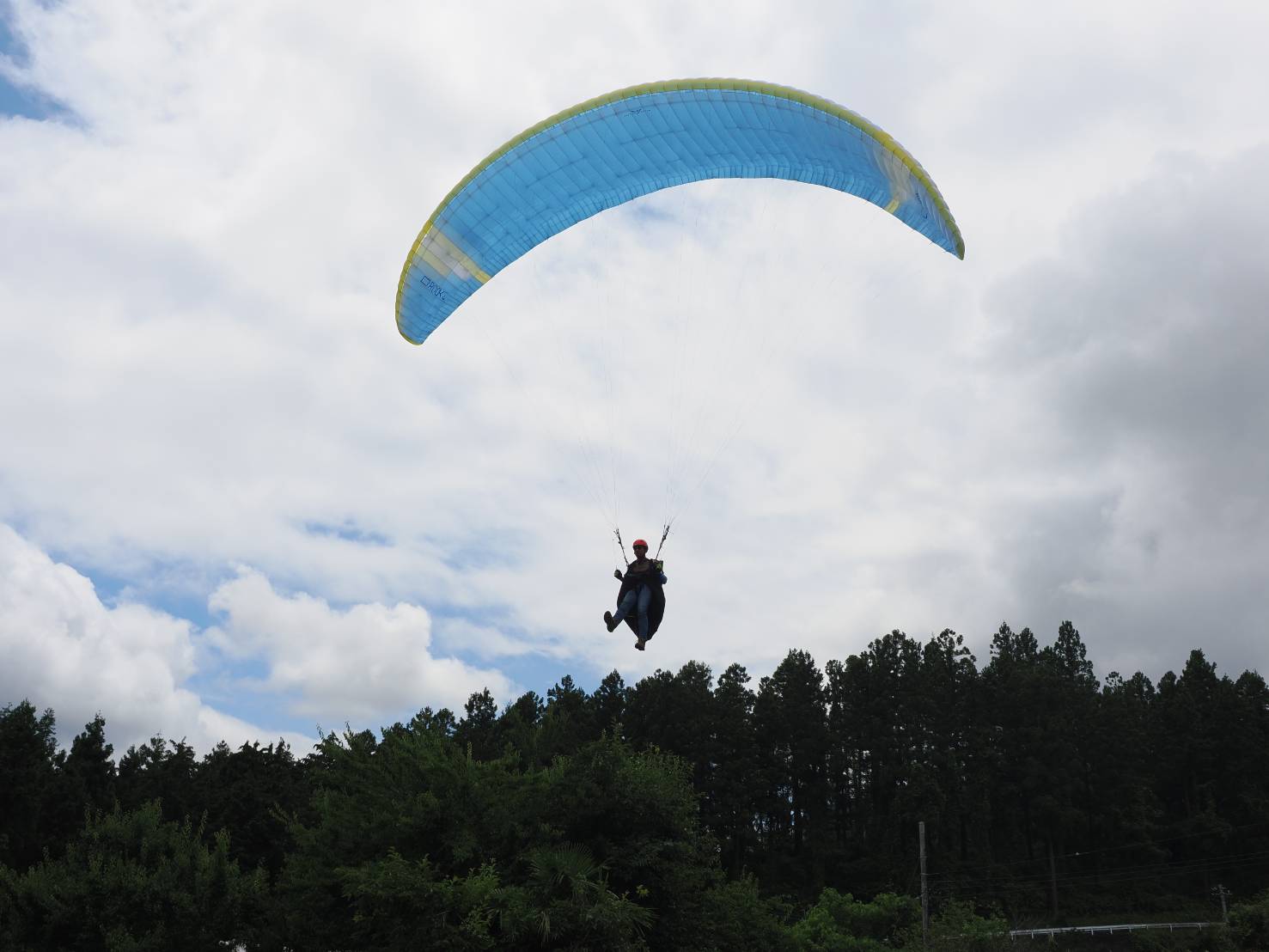 昨日は大雨で今日は大丈夫かなと不安な一日でスタートしました。早朝は雨がパラパラ降っていましたが、すぐに止み、テイクオフの風もバッチリ!と思いきや、弱いフォローから無風を行ったり来たりで、晴れ間もありません。
